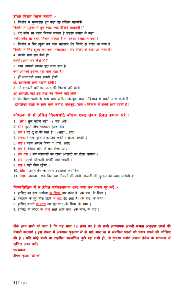 पुरुष, काल, वाच्य, क्रिया-विशेषण, सबंधबोधक, योजक तथा विस्मययादि बोधक की पहचान , विराम चिह्न, ‘र’ के विभिन्न रूप में से कोई छह वस्तुनिष्ठ प्रश्न पूछे जाएंगे।