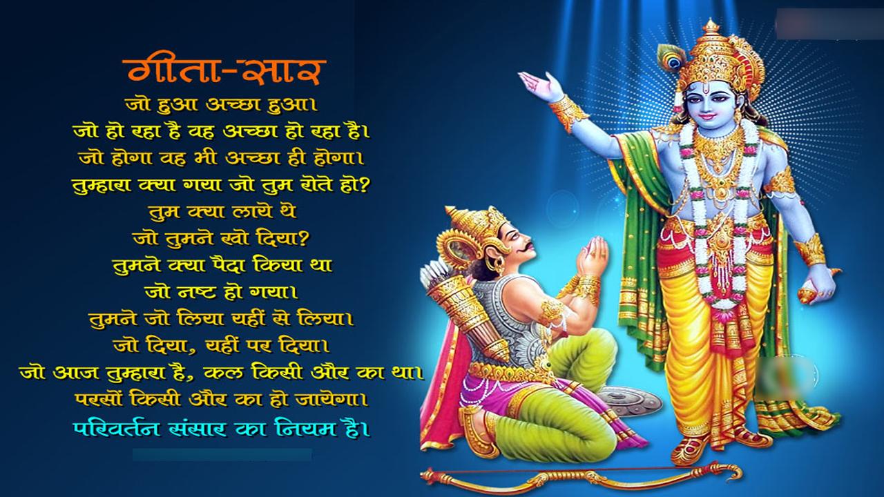 श्रीमद्भागवद् गीता अर्जुन के अलावा धृतराष्ट्र एवं संजय ने सुनी थी। अर्जुन से पहले गीता का परम पावन ज्ञान श्रीहरि ने सूर्यदेव को सुनाया था। श्रीमद्भागवद् गीता को किसने लिखा, यह प्रमाणिक रूप से स्पष्ट नहीं है। गीता में 18 अध्याय और 700 श्लोक हैं। गीता का दूसरा नाम गीतोपनिषद है। भागवत गीता का सार हमारे जीवन को एक पल में बदल सकता है। महाभारत काल में दिया गया गीता का उपदेश आज भी प्रासंगिक है। गीता का उपदेश समस्त जगत के लिए है। आइए जानते हैं गीता के कुछ सार।