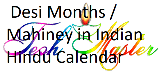 12 Desi Months/Mahiney in Indian Hindu Calendar