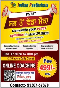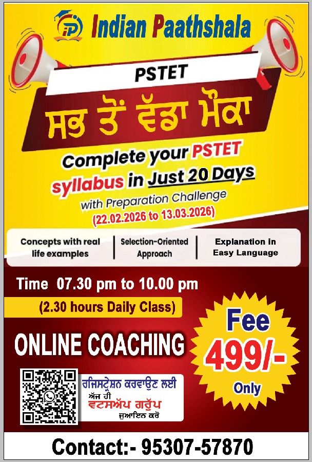 рдпрджрд┐ рдЖрдк PSTET (Punjab State Teacher Eligibility Test) рдХреА рддреИрдпрд╛рд░реА рдХрд░ рд░рд╣реЗ рд╣реИрдВ рдФрд░ рдХрдо рд╕рдордп рдореЗрдВ рдкреВрд░рд╛ рд╕рд┐рд▓реЗрдмрд╕, рд╕рд╣реА рд░рдгрдиреАрддрд┐ рдФрд░ рдЪрдпрди-рдЙрдиреНрдореБрдЦ рдорд╛рд░реНрдЧрджрд░реНрд╢рди рдЪрд╛рд╣рддреЗ рд╣реИрдВ, рддреЛ Indian Paathshala рдЖрдкрдХреЗ рд▓рд┐рдП рд▓реЗрдХрд░ рдЖрдпрд╛ рд╣реИ рдПрдХ 20 рджрд┐рдиреЛрдВ рдХреА рд╡рд┐рд╢реЗрд╖ PSTET Preparation Challengeред